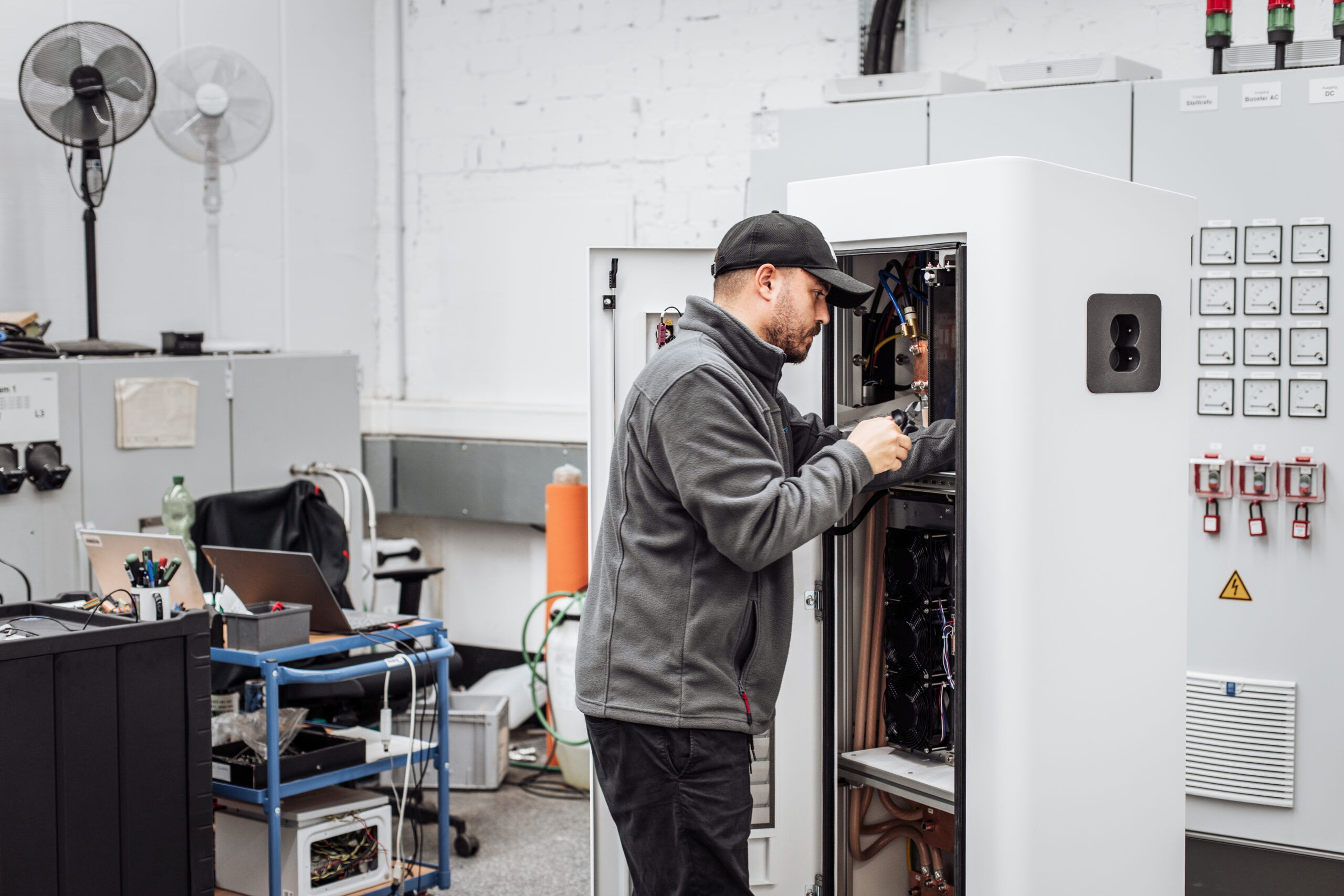 Die Produktion der Ladegeräte, die wir ausliefern, findet heute noch in der hauseigenen Produktion in Dinslaken satt. Unsere engagierten Mitarbeiter installieren die Technologie sorgfältig und präzise von Hand in jedes einzelne Ladegerät.