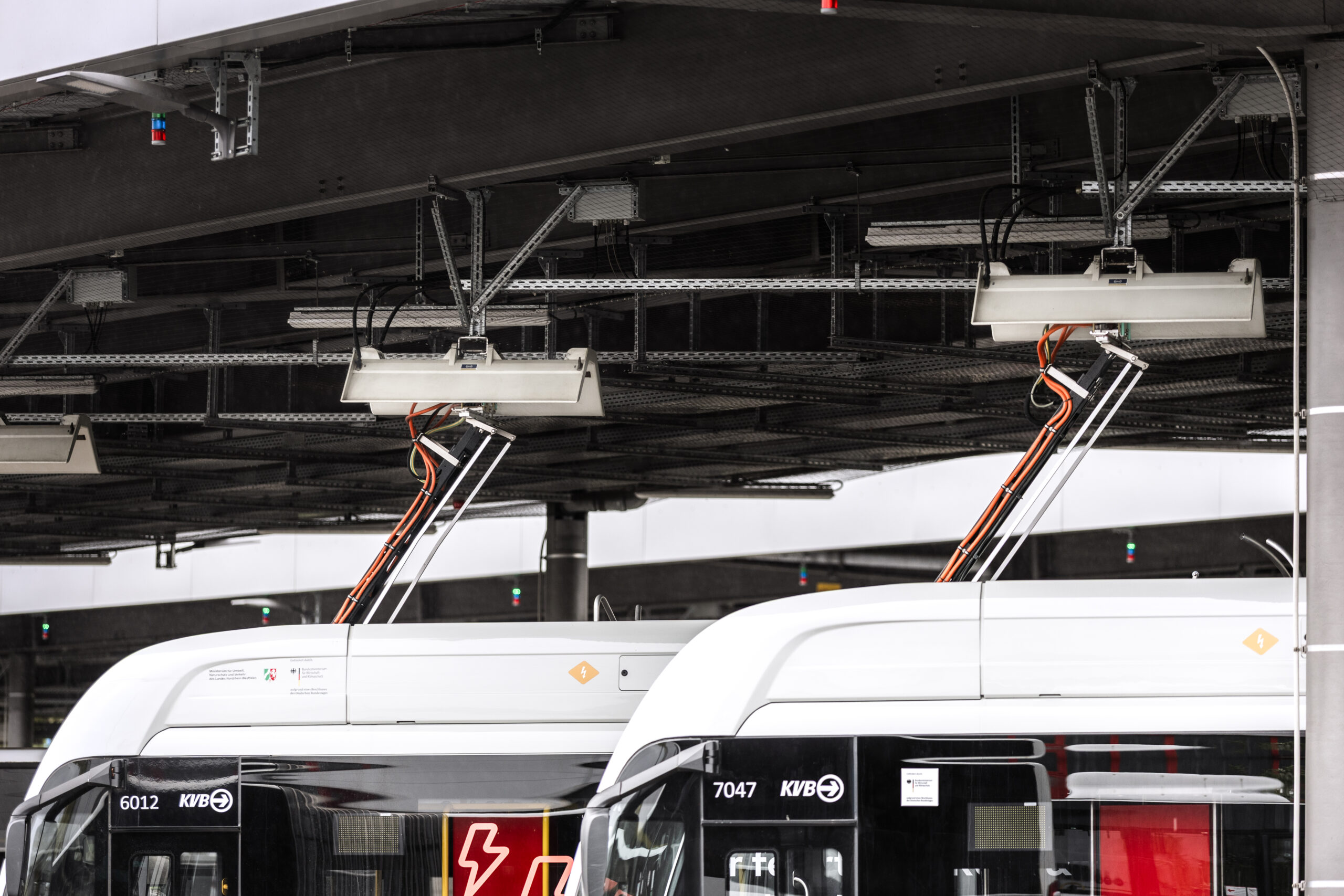 Das Herzstück des „grünen Depots“ bildet die von der SBRS GmbH errichtete Ladeinfrastruktur. In zwei Umspanngebäuden wird der von RheinEnergie gelieferte Grünstrom auf eine Lade-Gleichspannung von 400–850 V umgewandelt, wobei energieeffiziente Ladegleichrichter eine entscheidende Rolle spielen. Aktuell sind im Depot Porz 22 hintereinandergeschaltete 150-kW-Ladegeräte, 8 Einzel-Ladegeräte sowie ein 450-kW-Schnellladegerät in Betrieb. Die Energieflüsse werden über Kabel entlang der Traverse zu den überwiegend hintereinandergesteuerten zwei Ladehauben pro Ladegerät verteilt. Durch den Kontakt der Bus-Pantographen mit den Ladehauben werden die erforderlichen Daten zum Ladevolumen der Busbatterie, der verfügbaren Ladezeit sowie dem nächsten geplanten Linieneinsatz ausgetauscht und die benötigte Strommenge angefordert.